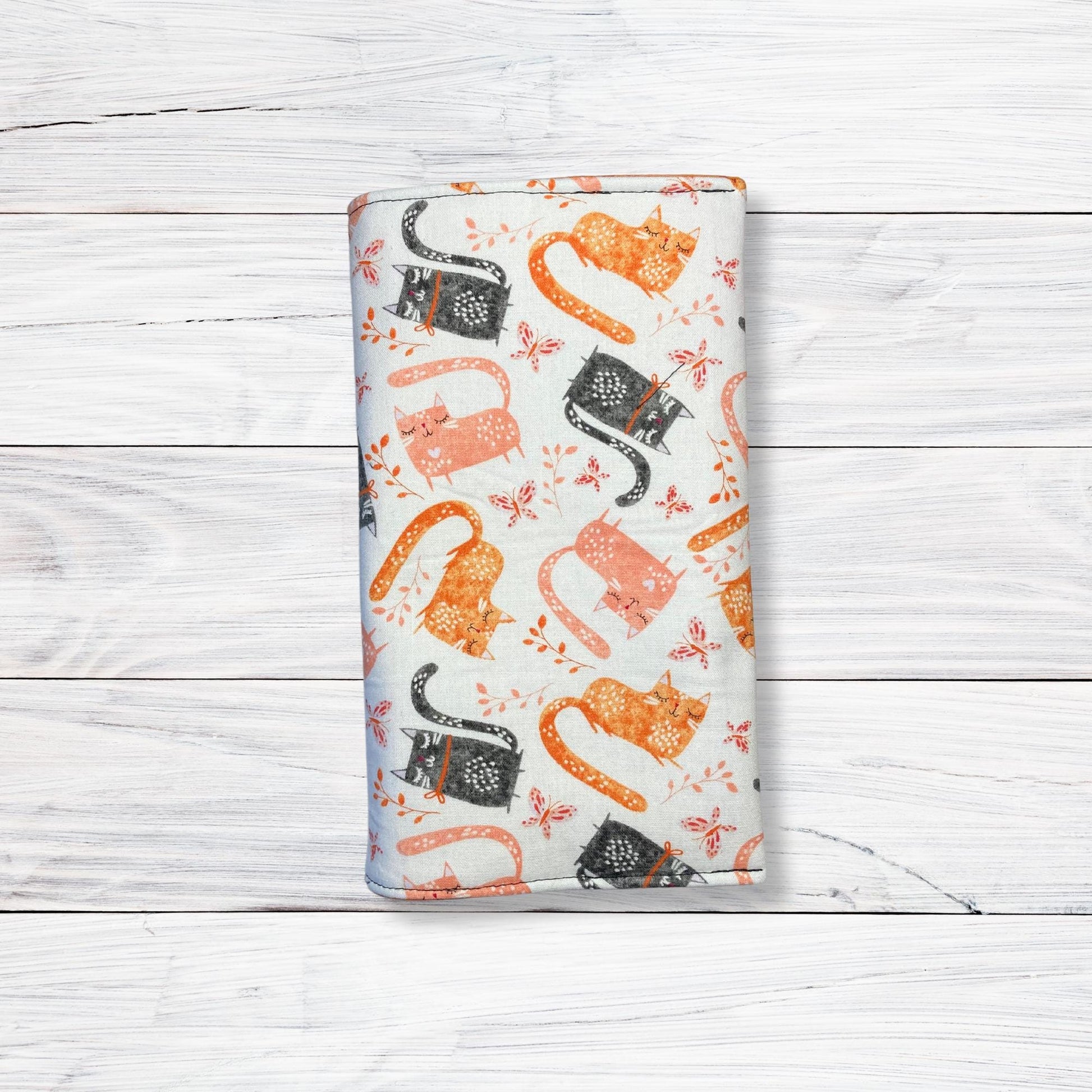 Adjustable Fabric Book Cover - Orange Pink Grey Cats