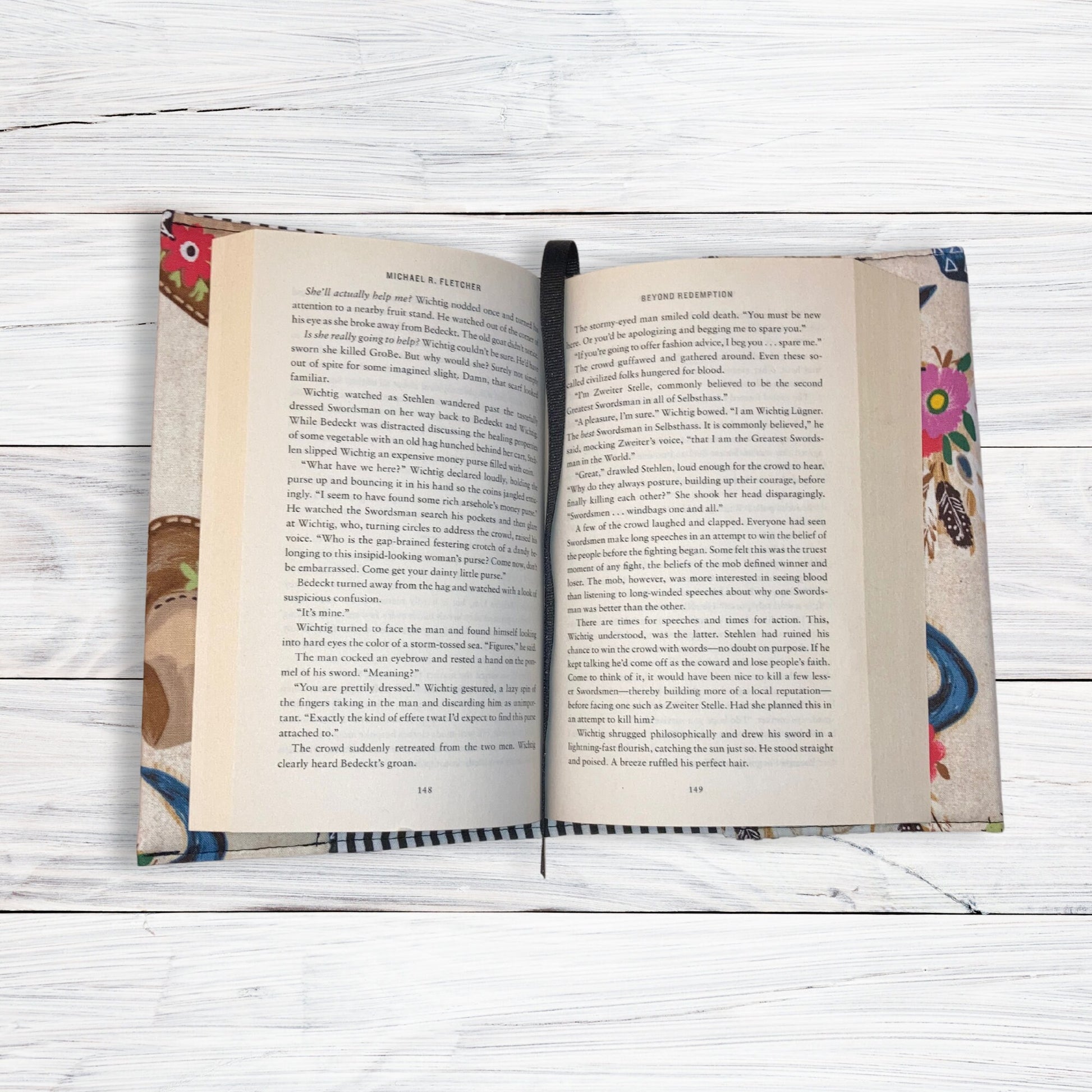 This fully lined adjustable & padded Book Cover is made with 100% cotton fabric. I've added felt interfacing to keep the shape, give a soft feel and to better protect your book. It comes with an elastic band that holds the back flap and also allows you to adjust it to exact size of your book.