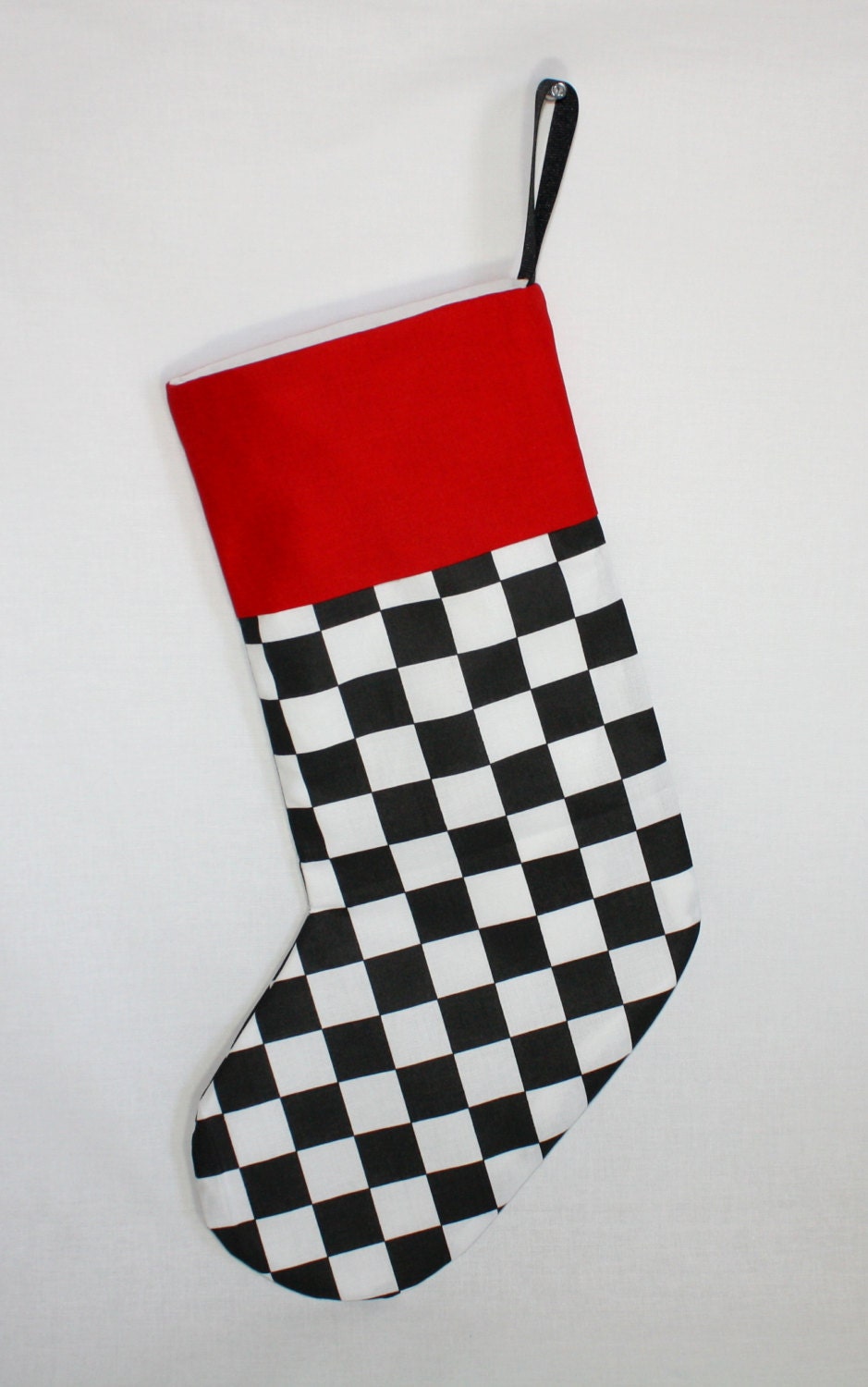 Checkered Flag Hand Made Christmas Stocking, Men, Boys, Racecar driver