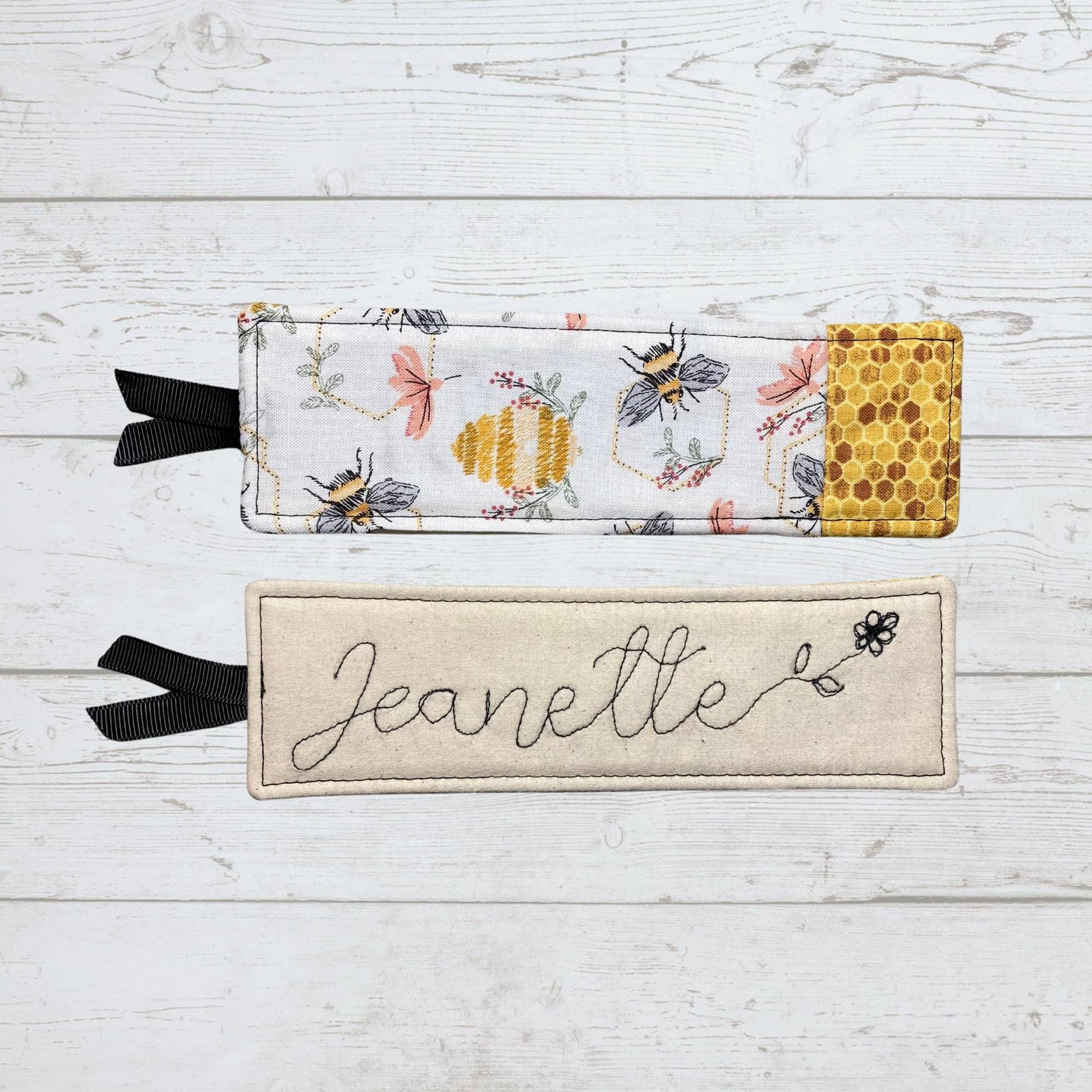 Custom Name Handmade Fabric Bookmark, Personalized Wording, Gifts for Teaders Book lovers - Bees Honeycombs