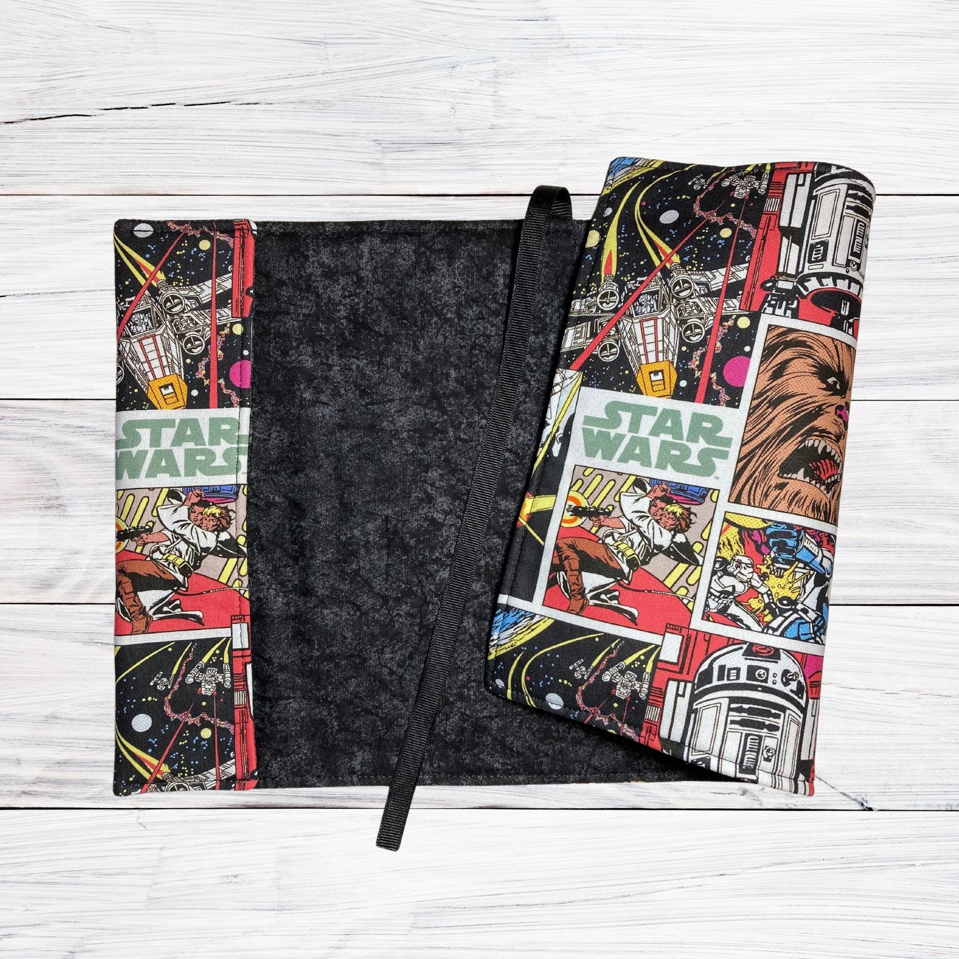 This fully lined adjustable & padded Book Cover is made with 100% cotton fabric. I've added felt interfacing to keep the shape, give a soft feel and to better protect your book. It comes with an elastic band that holds the back flap and also allows you to adjust it to exact size of your book.