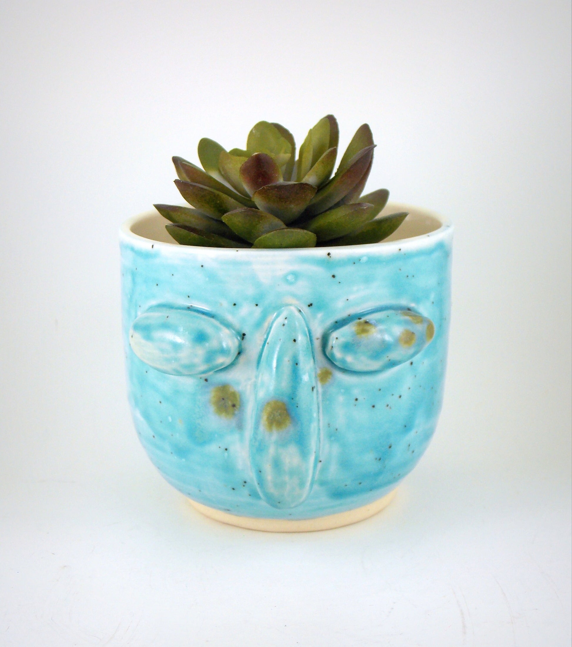 Succulent Planter Blue Face Handmade Planter Stoneware Clay Glazed Plant Pot Succulent Holder